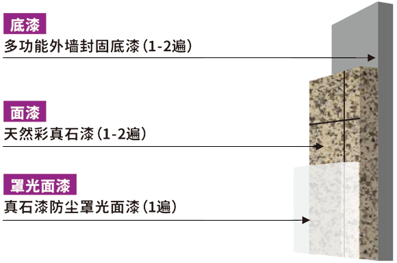 本产品采用有机硅改性丙烯酸乳液、天然彩砂、助剂等优质原材料。外观如天然石材般自然稳重、高雅气派和附着牢固,具有安全环保、装饰性强、透气性好、柔韧性和抗冲击性优异、耐候性卓越等特点。让您拥有一个高贵典雅、美观大方的家。