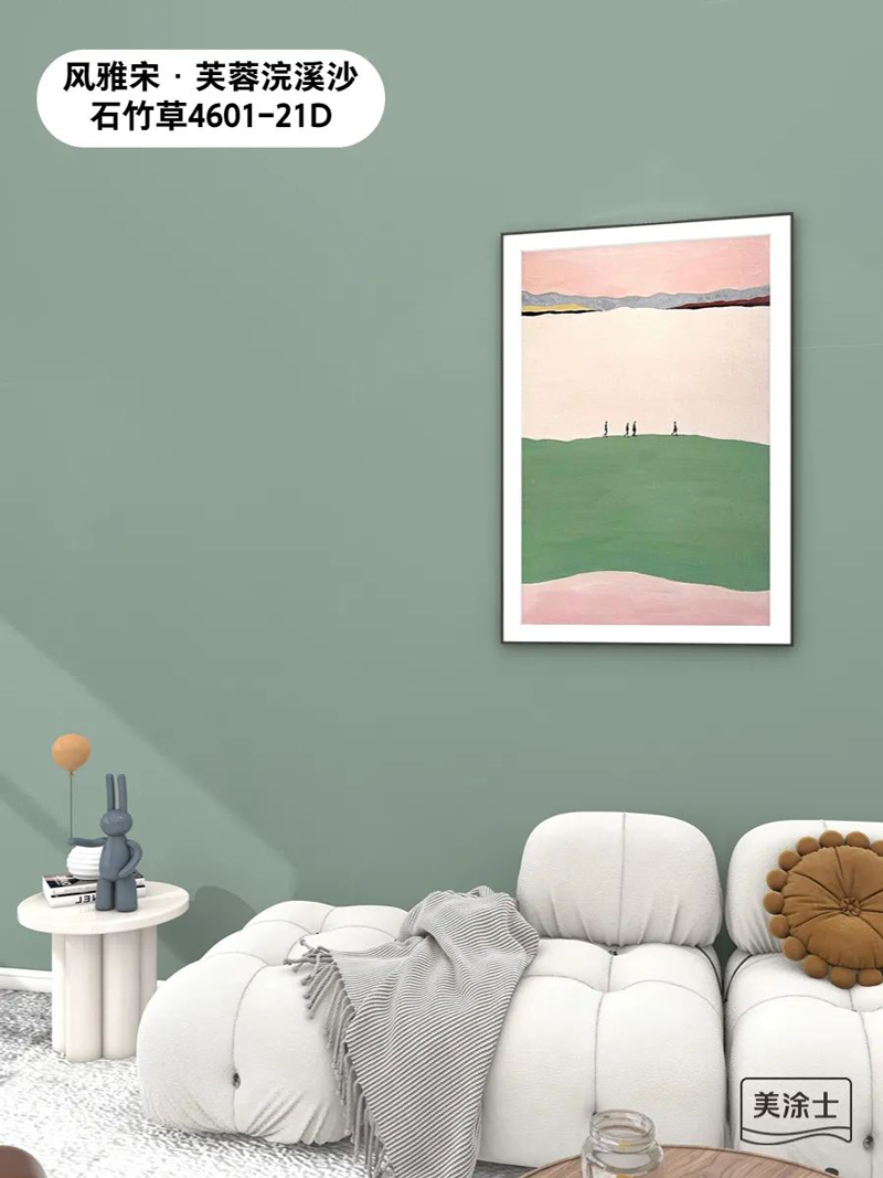 时尚是个轮回,兴盛于千禧年的天鹅绒艺术漆,与充满复古气息的苔藓绿融为一体,有别于现代装修风格和千篇一律的全屋白墙设计中,重新戳中了人们的心。