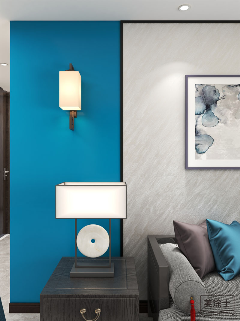 简单的蓝色背景墙装饰,搭配原木家居,显得柔和自然,舒适大方。家就是如此,无需过于繁复的装饰,简简单单,舒舒服服的即可。