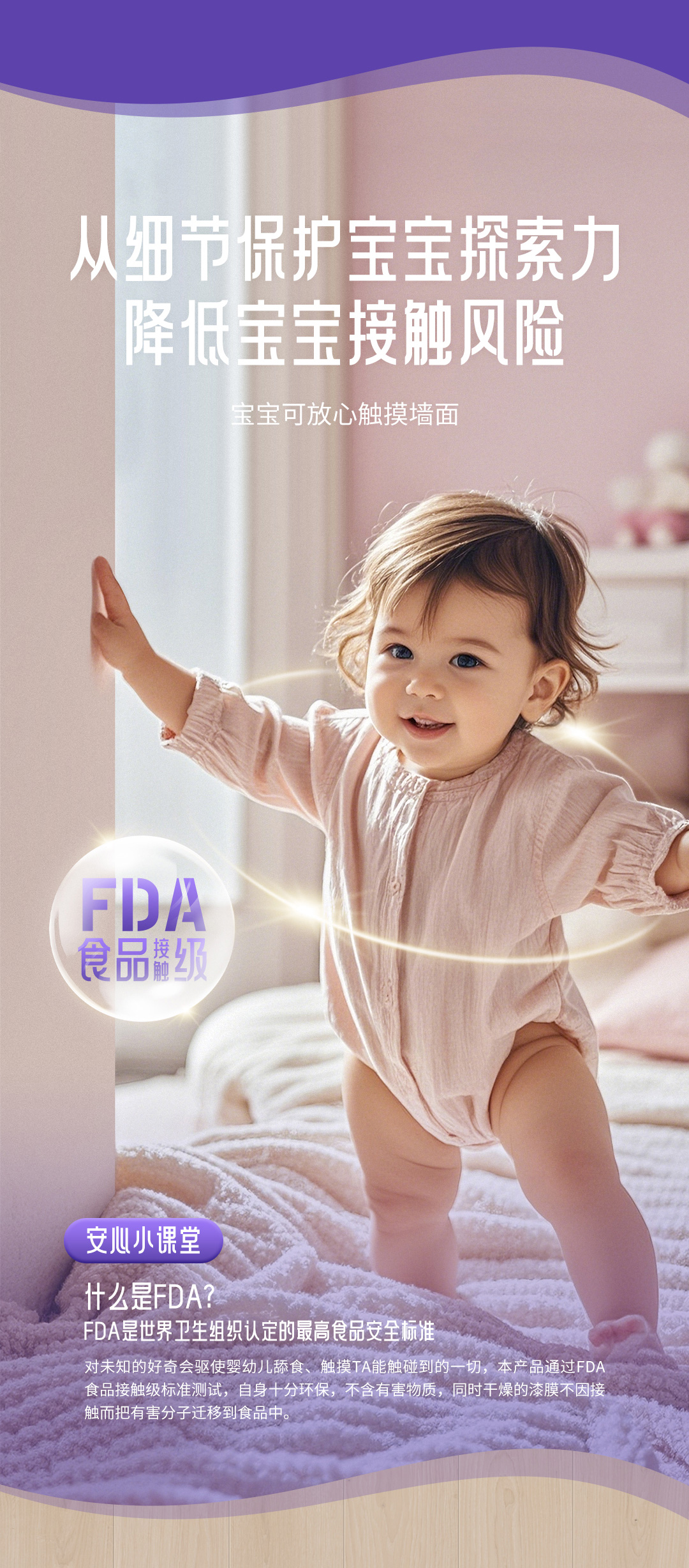 yth2206游艇会食品接触级母婴漆是一款专为母婴研发设计的全能型环保墙面漆甄选绿色环保原料、抗醛优质乳液具有高科技净化空气技术气味更清新更环保。产品符合美国FDA食品接触级标准让孩子净享海洋般的自然、清新与健康在抗污方面采用天然生物贝壳粉使产品漆膜细腻达到I级抗污水彩笔可随意涂鸦随时随地还宝宝一个干净、洁白的墙面产品更是可以刷出多种质感纹理效果同时具有护敏抗病毒、超强耐擦洗功能银离子抗菌高达99.99有效抵御墙面各种常见细菌。真爱的呵护总是细致入微让每一位家人都能净享清新的家居环境。
